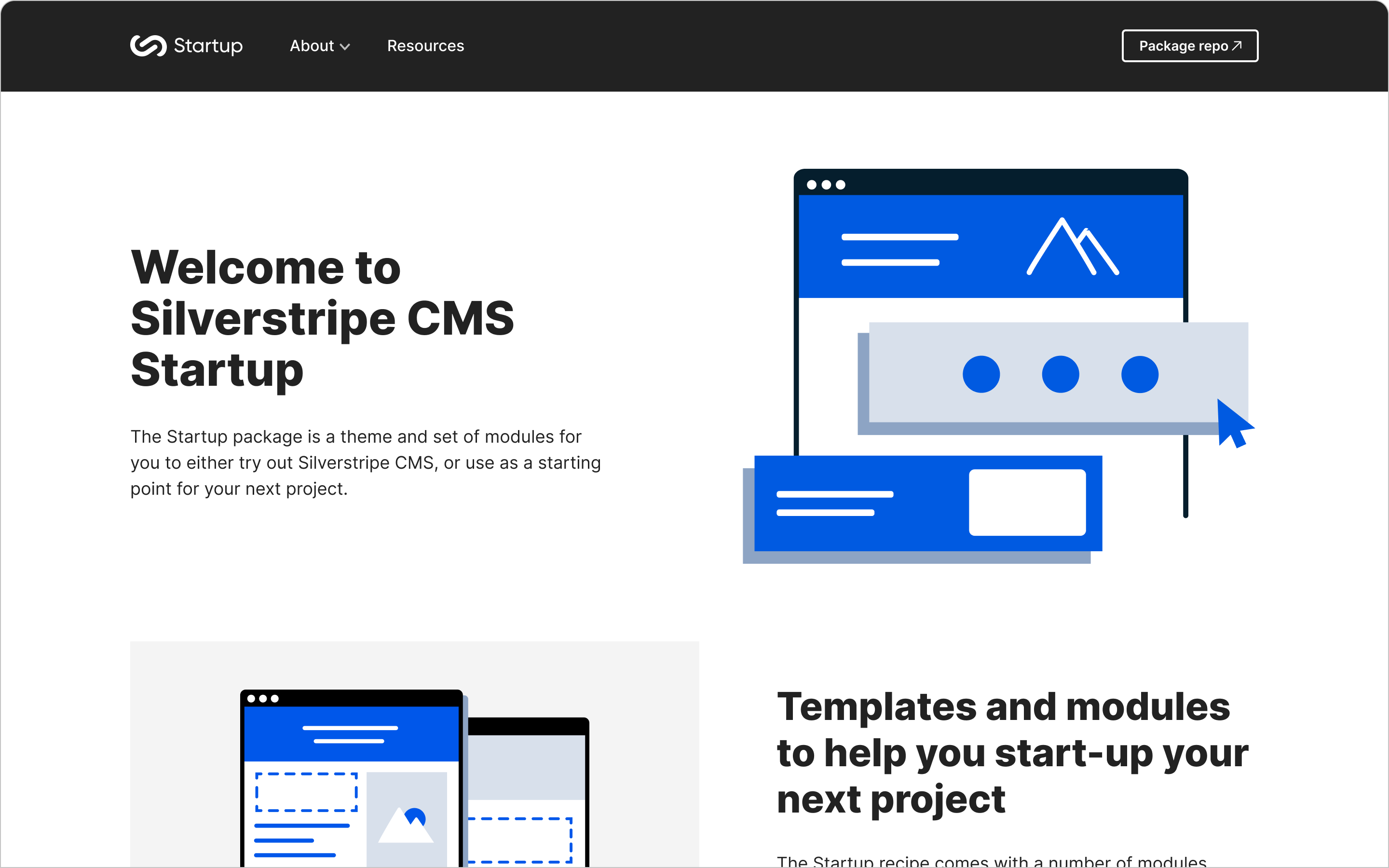 Startup is a quick, easy-to-use, yet powerful way for you to try out Silverstripe CMS, or use it as a starting point for your next project.